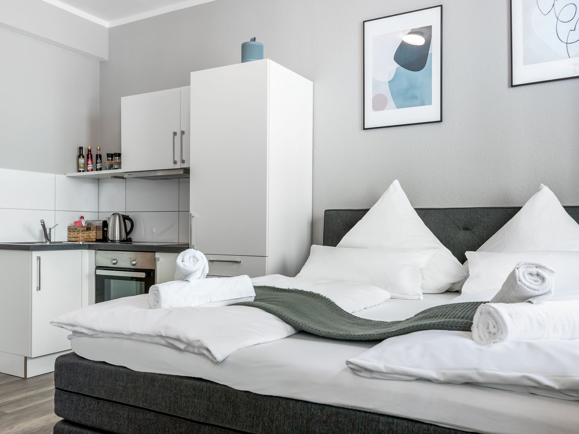 Unsere sieben modernen Studio Apartments verbinden stilvolles Design mit gemütlicher Ausstattung und bieten dir mitten in der Innenstadt den idealen Ort zum Ankommen und Wohlfühlen.